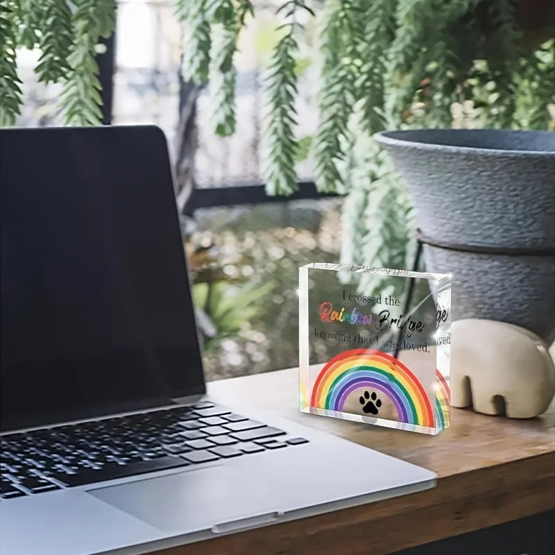 Honor your cherished companion with a 2D flat acrylic pet memorial that carries their paw prints across the Rainbow Bridge and keeps their memory close to you, bringing daily comfort.
