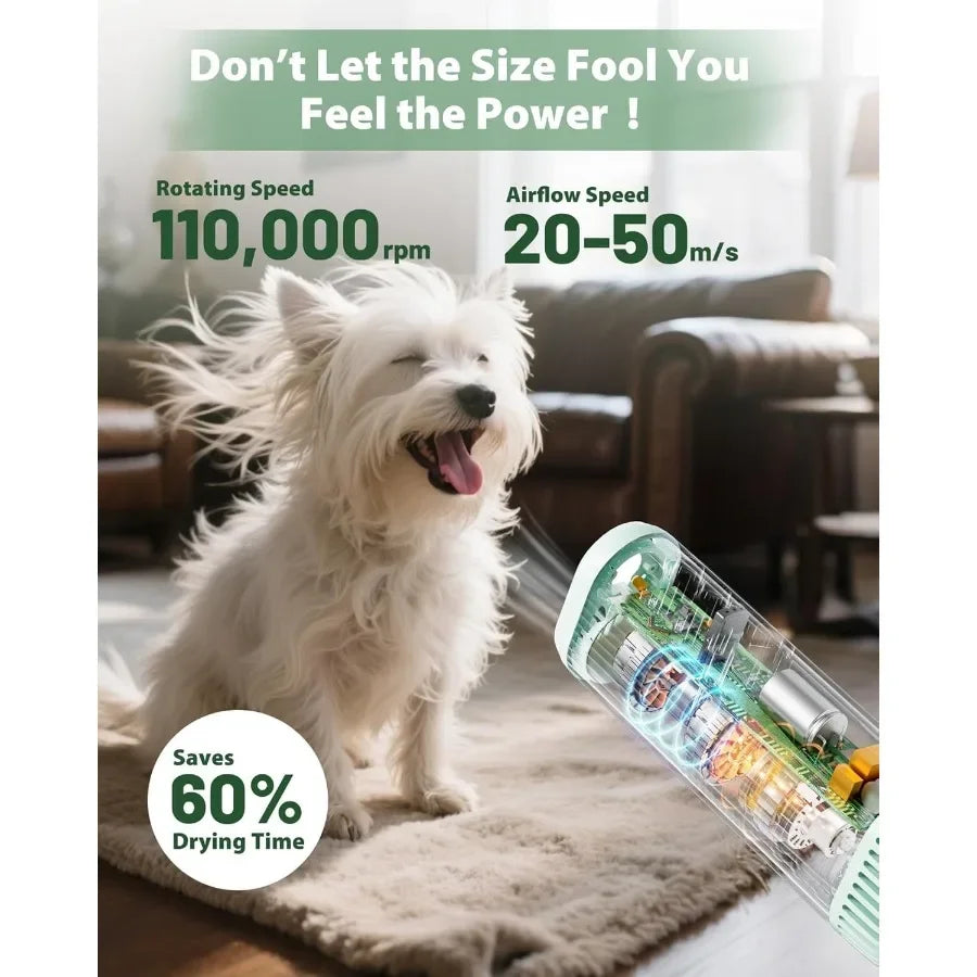 - Fast, high-velocity drying with a 950W brushless motor and airflow up to 50 m/s delivers up to 60% faster drying than traditional dryers.
