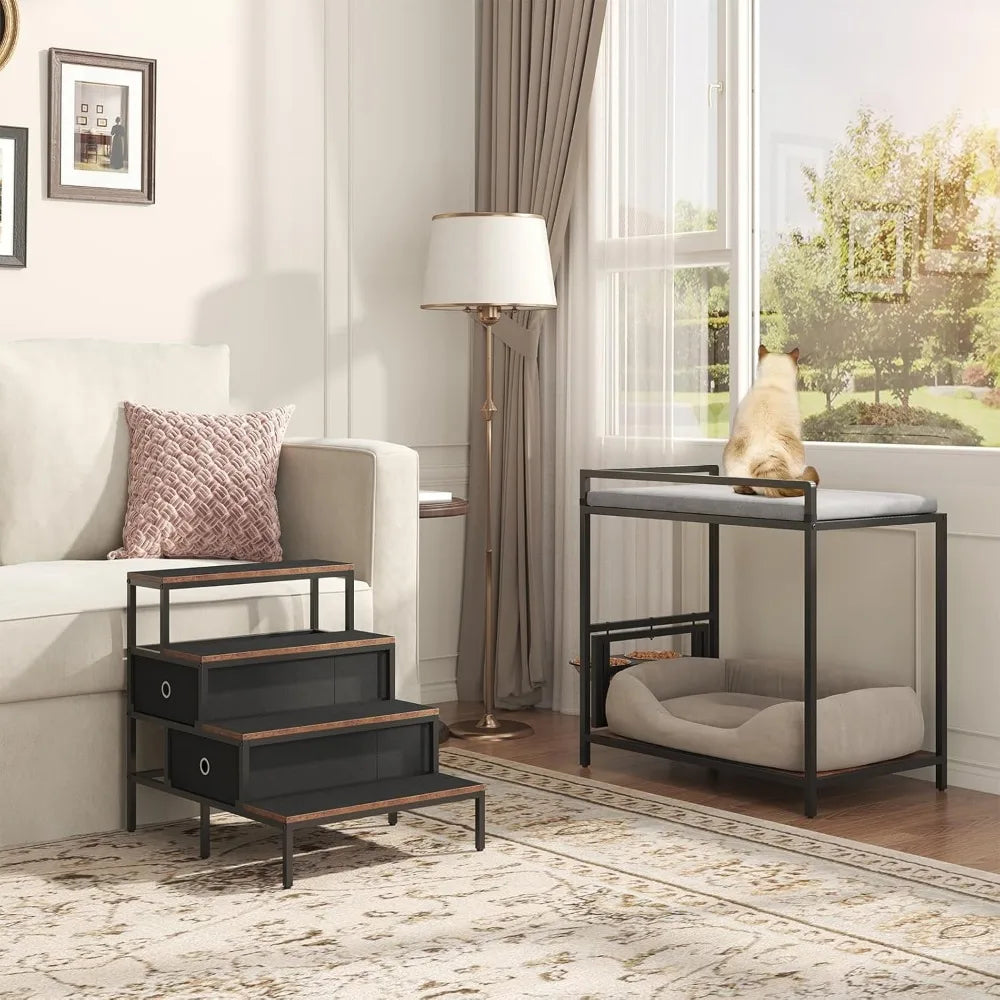 360 Rotating Adjustable Pet Feeder Perch Staircase Bed With Drawers