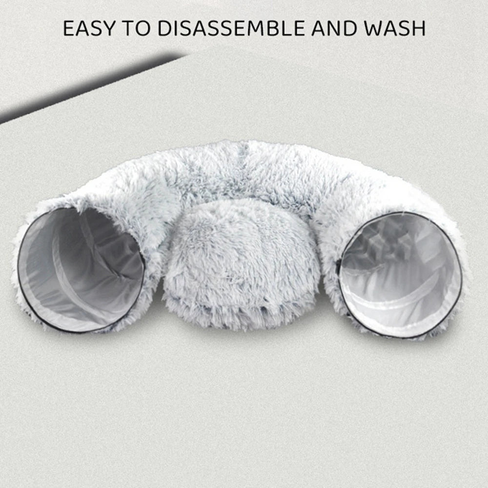 - Two-in-one versatility: Includes two plush tunnels and a plush pad; fold and rearrange to transform into a cozy cat bed.