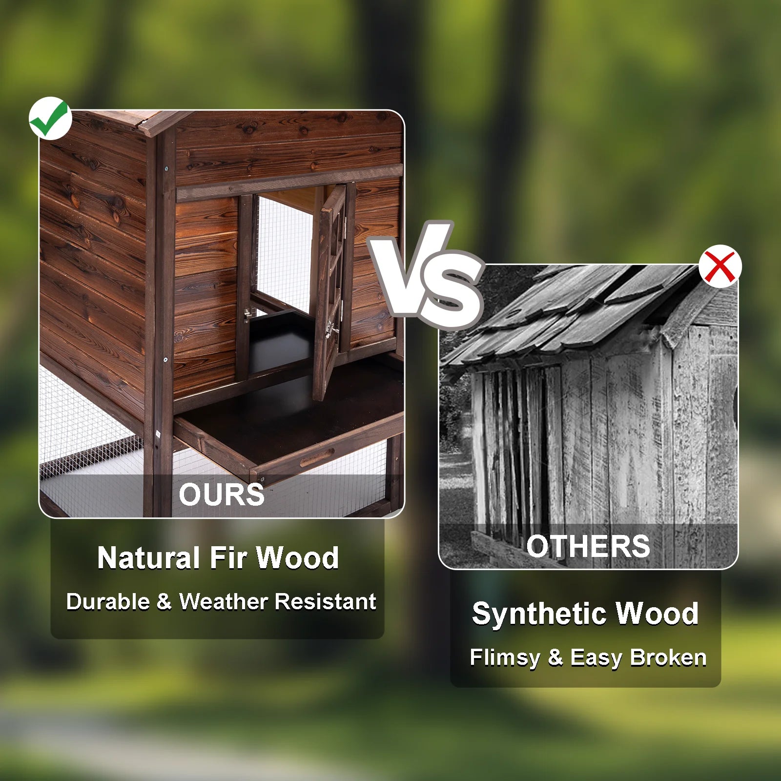 - You get a durable, weatherproof design: solid rain-resistant fir wood with protective paint and a green asphalt roof that keeps the coop dry and sun-safe.