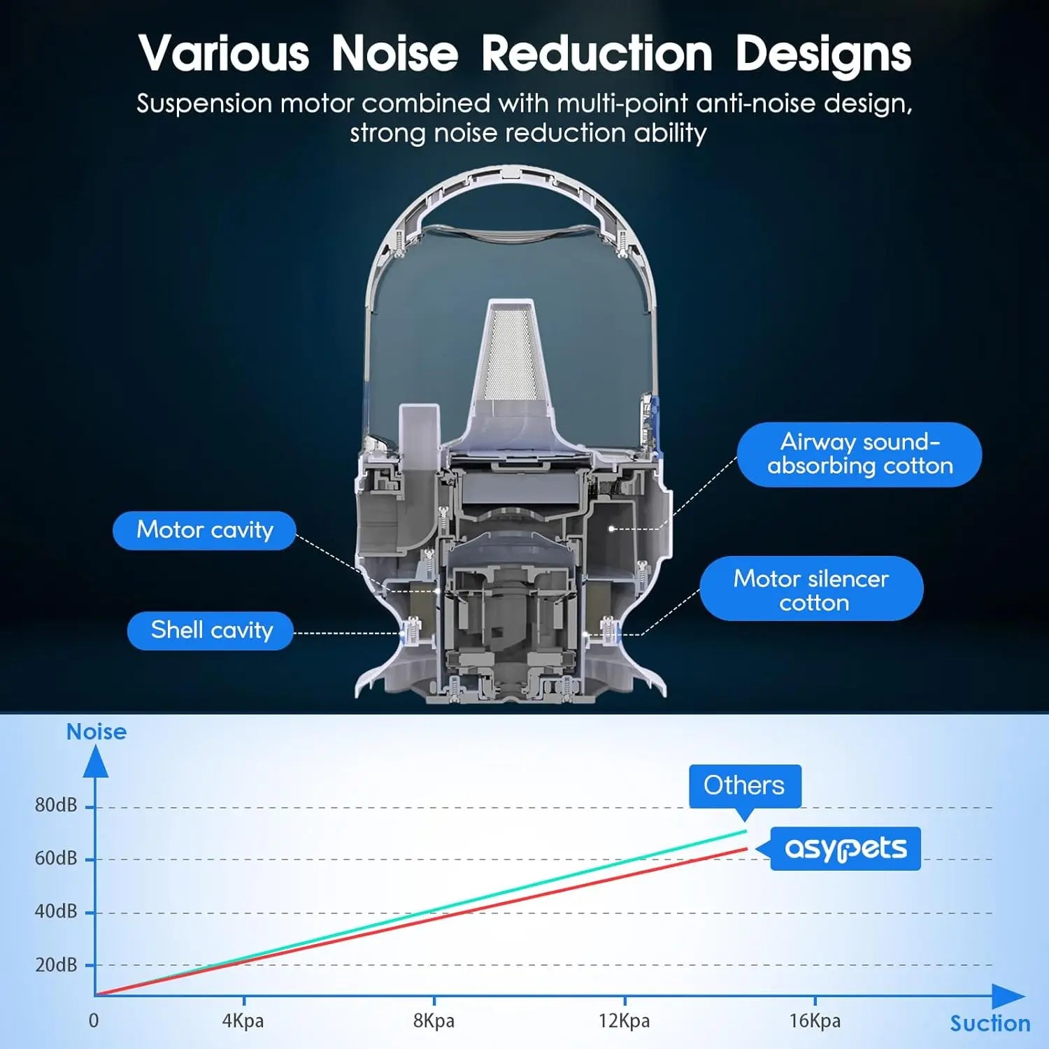 - Powerful suction and cyclone design: 16 levels of suction up to 13.4 KPa efficiently capture 99% of pet hair into the vacuum container, thanks to the cyclone intake system that reduces clogs and maintains strong performance.