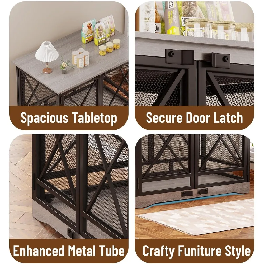 - Heavy-Duty Dog Crate - This large dog furniture crate is built with high-quality steel and wood, reinforced with a heavy-duty dog crate design that supports up to 180 lbs. The sturdy triangular frame, mesh sides, and anti-chew structure ensure durability, making it a reliable dog cage furniture for large dogs. Featuring a secure locking system and non-slip base, this furniture dog crate guarantees that your dog stays safely inside, while offering protection against chewing or any damage.