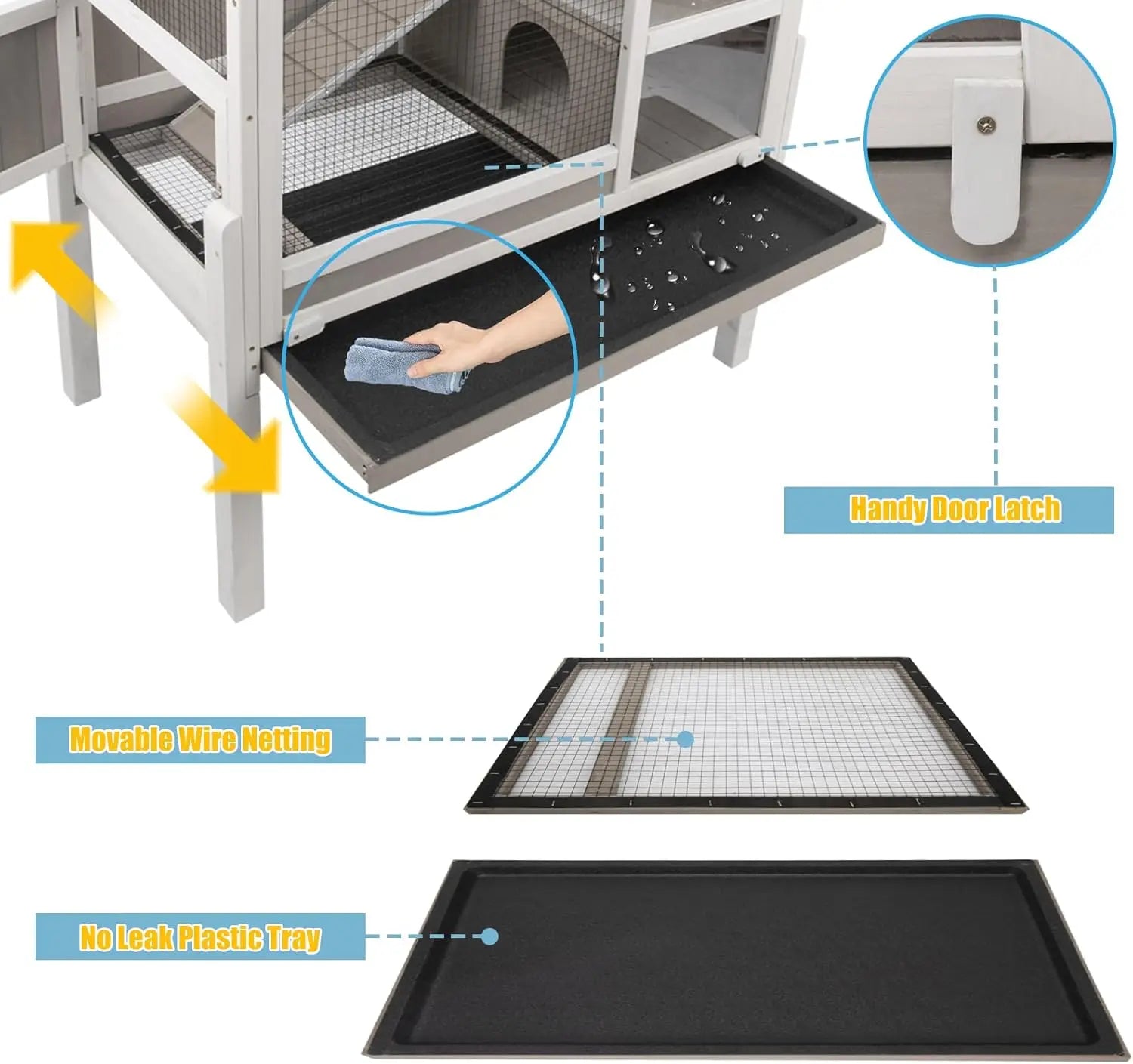 - Two-story design with built-in stairs and a dedicated hideout encourages activity, exploration, and a private resting space for your guinea pigs, rabbits, and other small pets.