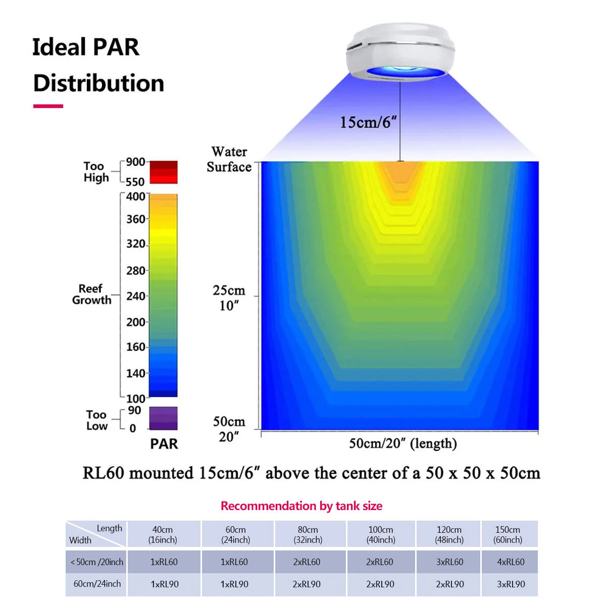 - Two power options for every tank size: RL60 at 60W (suitable for 30–50 cm) and RL90 at 100W (suitable for 50–70 cm), delivering up to 4200 lm of bright, efficient illumination.