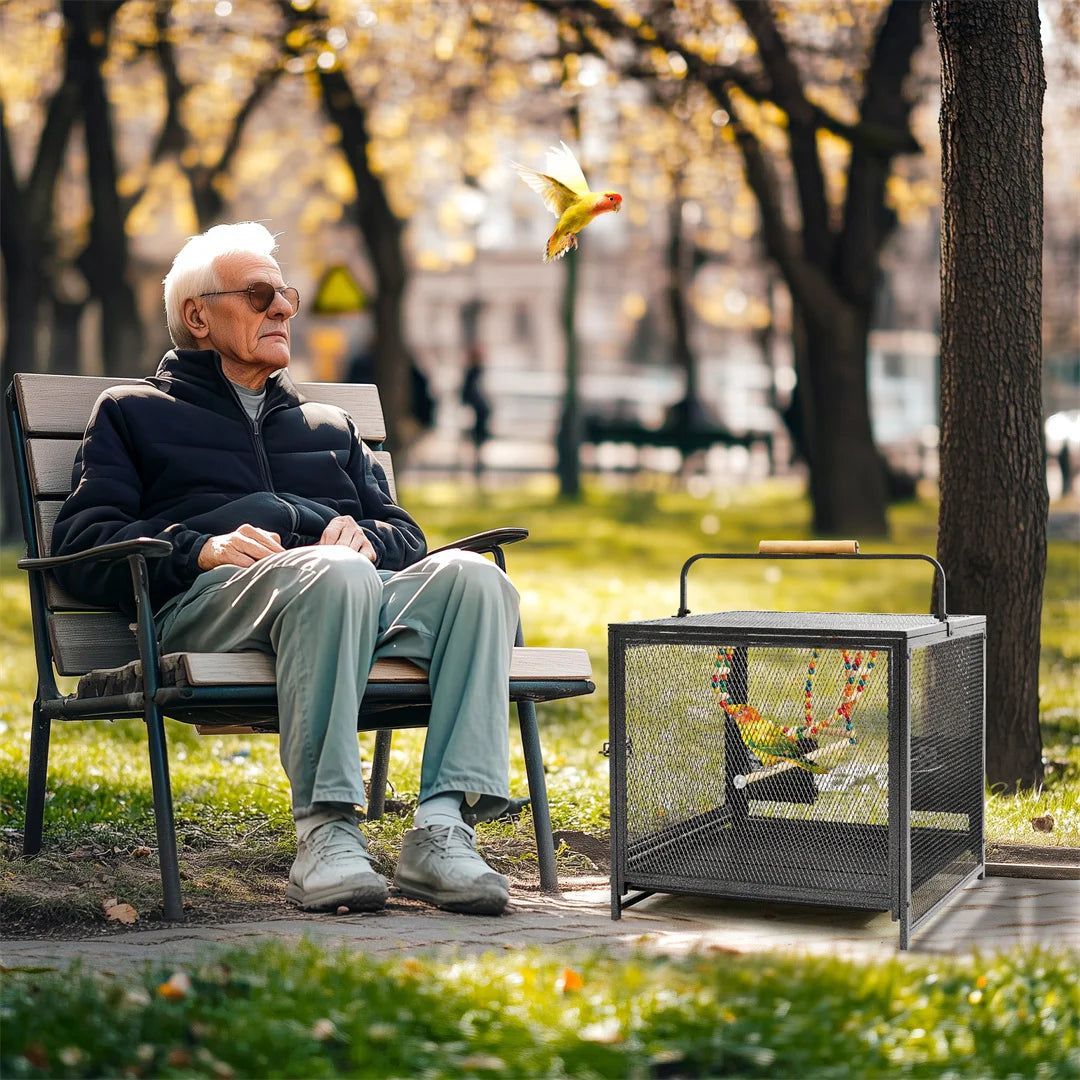 - Bird-friendly design with colorful hammock toys keeps your bird engaged, while a wooden perch and ample space promote natural movement, reduce stress, and suit parrots, conures, lovebirds, cockatiels, or budgies.